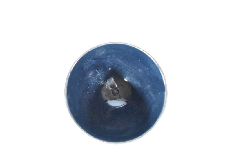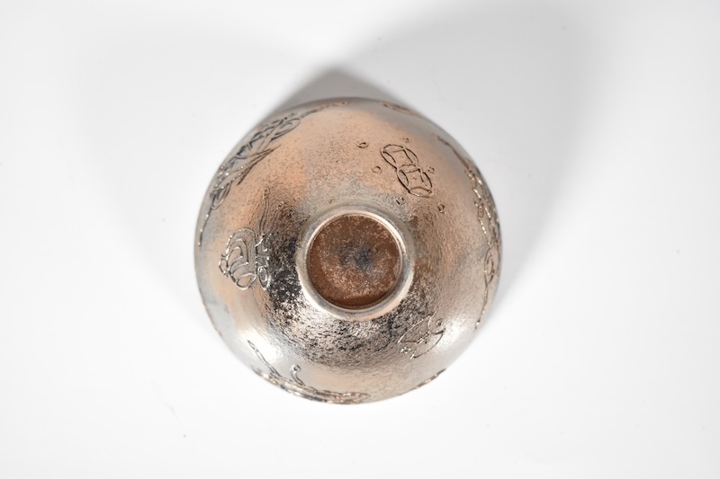 内側には黒い釉薬を用いておりブロンズの風合いとのコントラストが美しく、また抹茶の緑も映えるように仕上げています